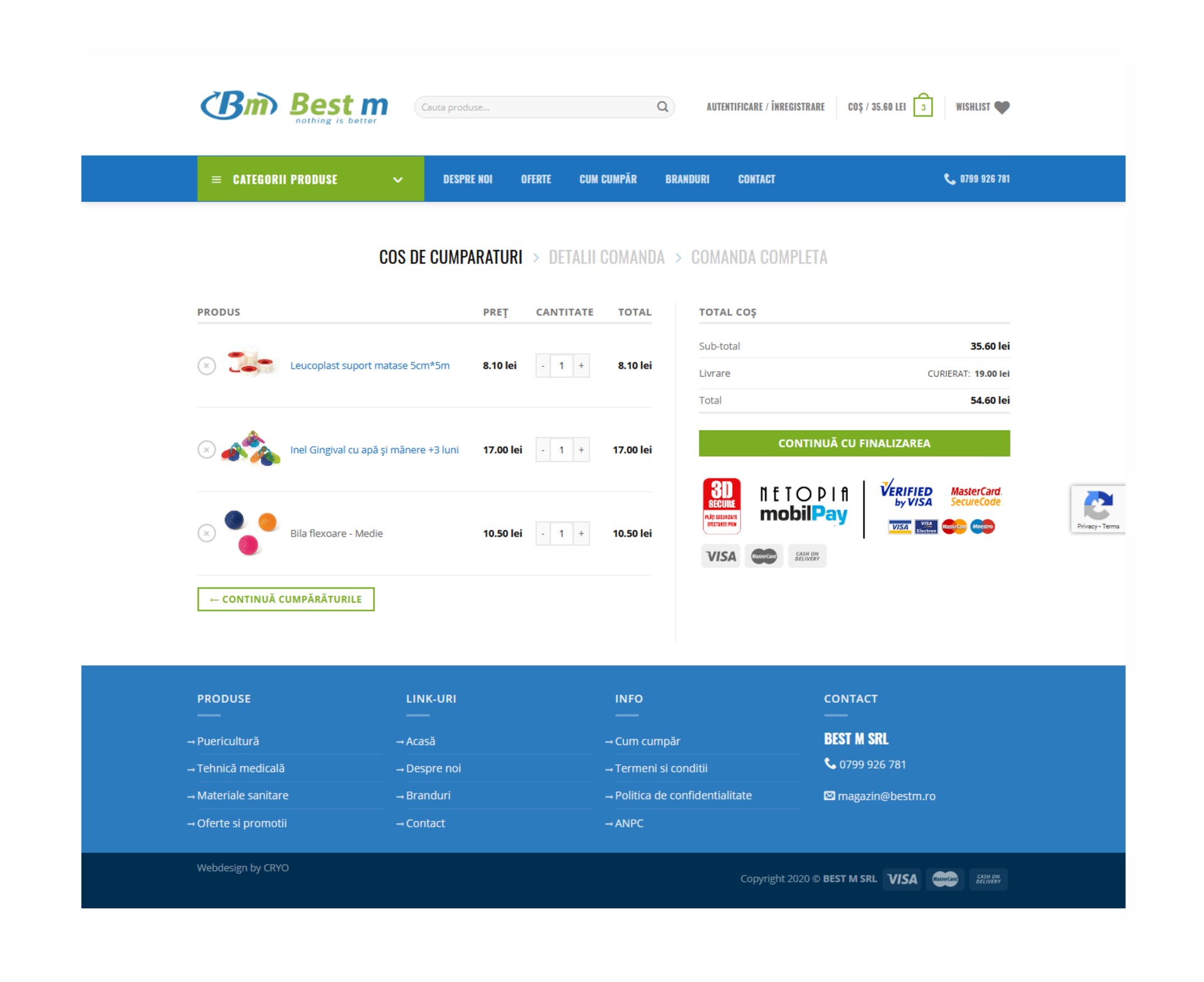 Best M este unul din cei mai importanți actori din segmentul de distribuție de produse parafarmaceutice din România, având peste 3000 de clienți și 4 puncte de distribuție (București, Constanța, Cluj și Suceava). Dezvoltarea afacerii în mediul online și extinderea portofoliului de clienți către persoanele fizice a fost un pas necesar, de aceea magazinul online realizat de Cryo a înglobat opțiuni complexe de vânzare și marketare a produselor.